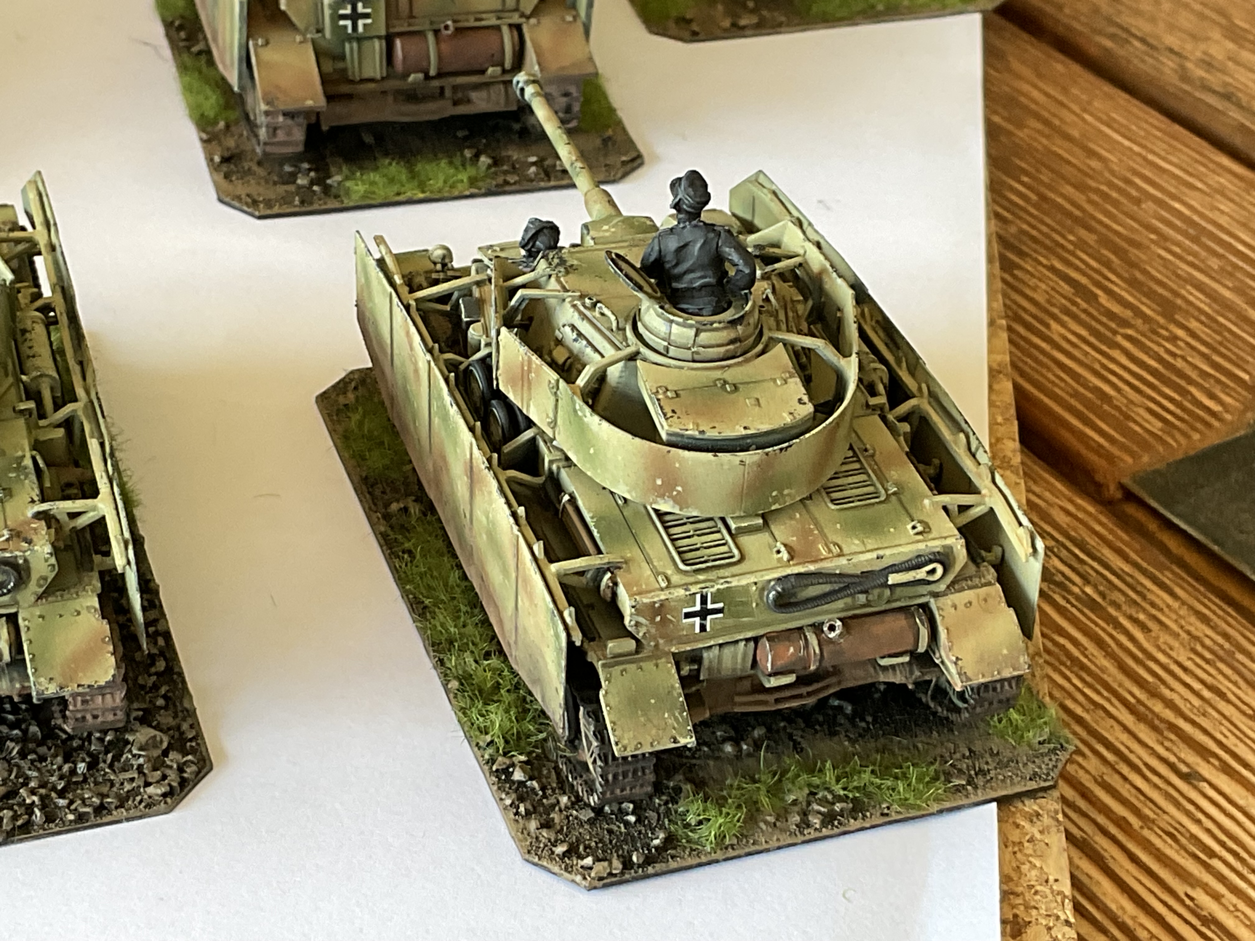 The PzIVHs of the 3rd Coy, 1st Batt, 22nd Pz Regt, 21st Pz Div finished, pretty relieved to get these done, they were taking a little long and I was getting antsy and eager to move on, next up will be the 1st batt (mech) of Panzer grenadier regt 125.